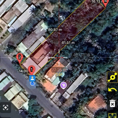 Diện tích: 14m mặt tiền x 80m chiều sâu, nở hậu 16m.