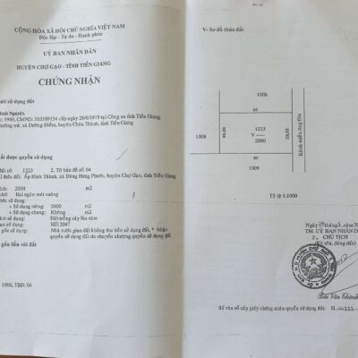 Mặt tiền đường nhựa xe 5 tấn. Vị trí lý tưởng, gần thị trấn Chợ Gạo, cách khu Láng Biển 300m (đang được quy hoạch làm Trung tâm hành chánh mới huyện Chợ Gạo và trung tâm mua bán và chế biến trái cây)